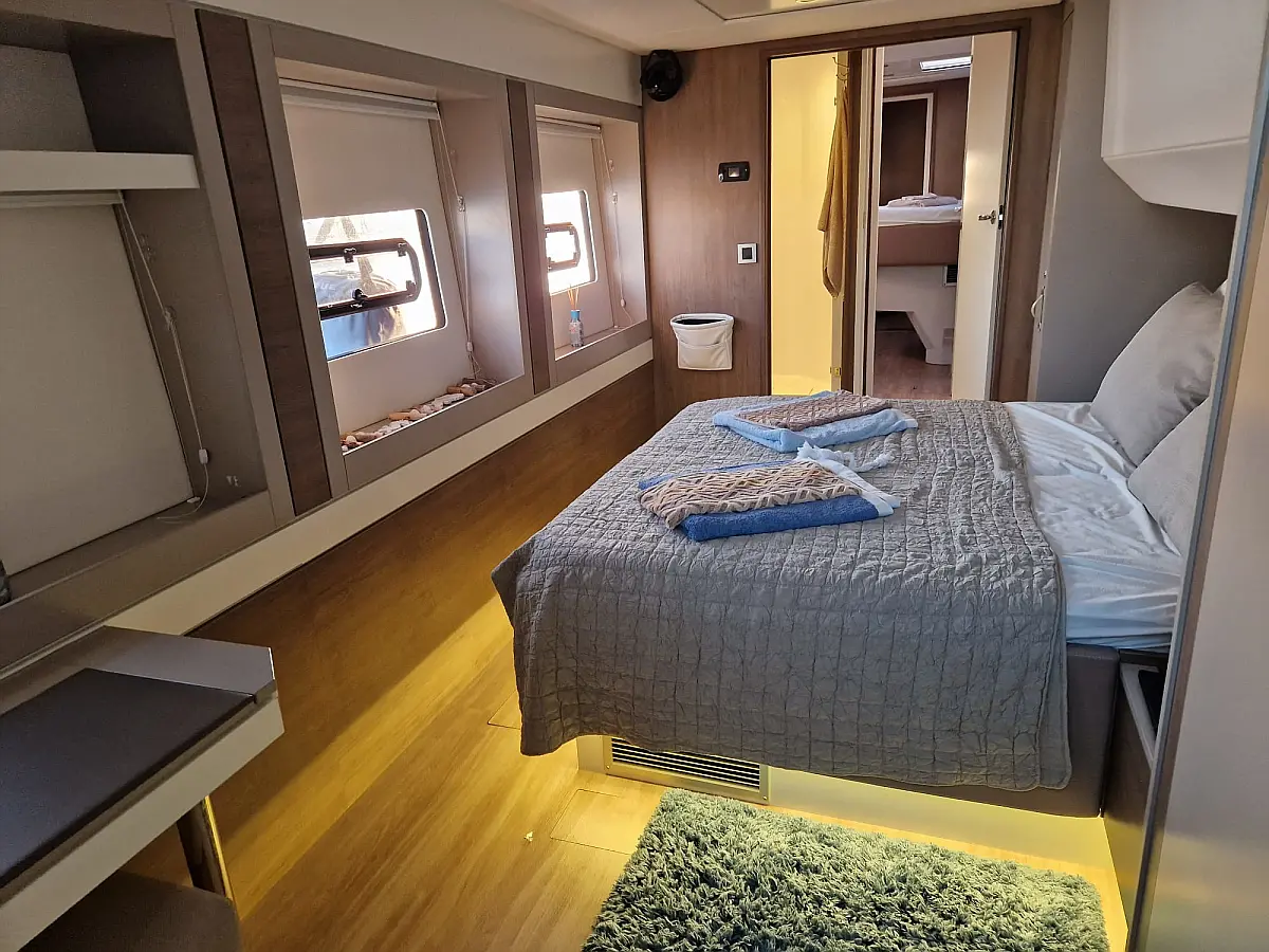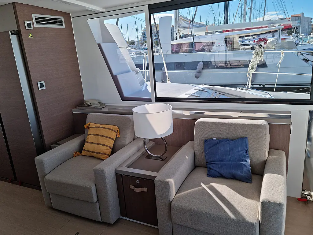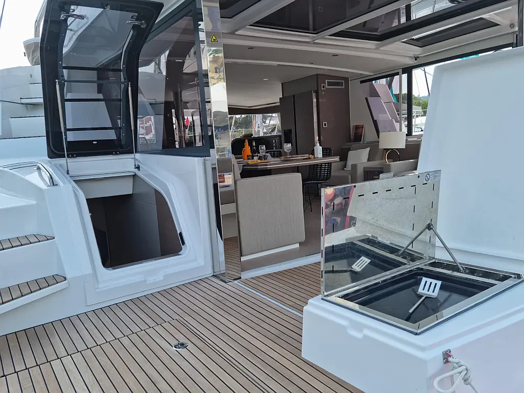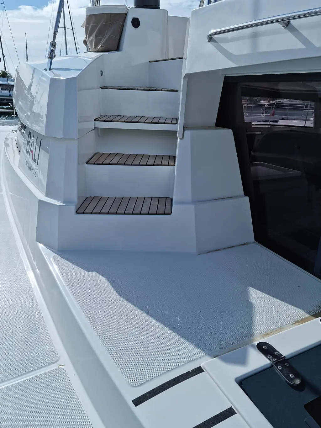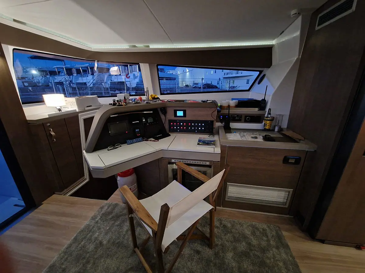 Cockpit cushions, Air condition, Dinghy, Refrigerator, Generator, Barbecue grill in cockpit, Coffee maker, Teak deck, Teak Cockpit, Water maker