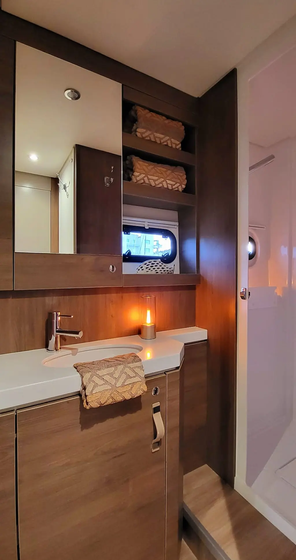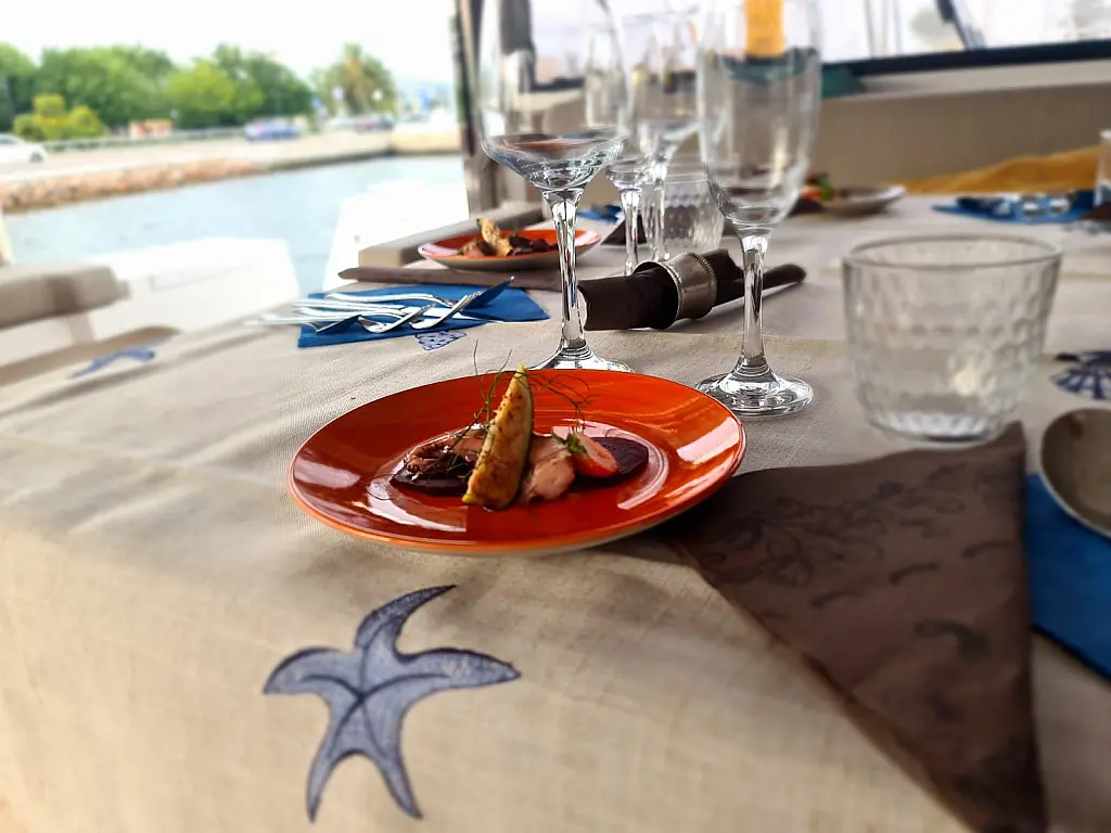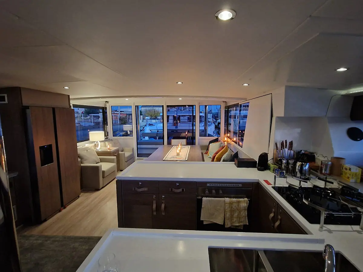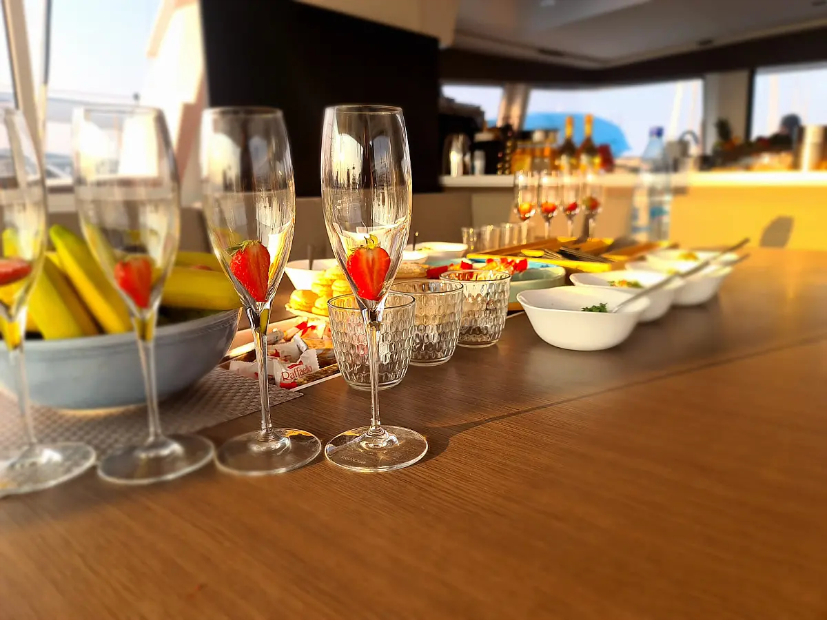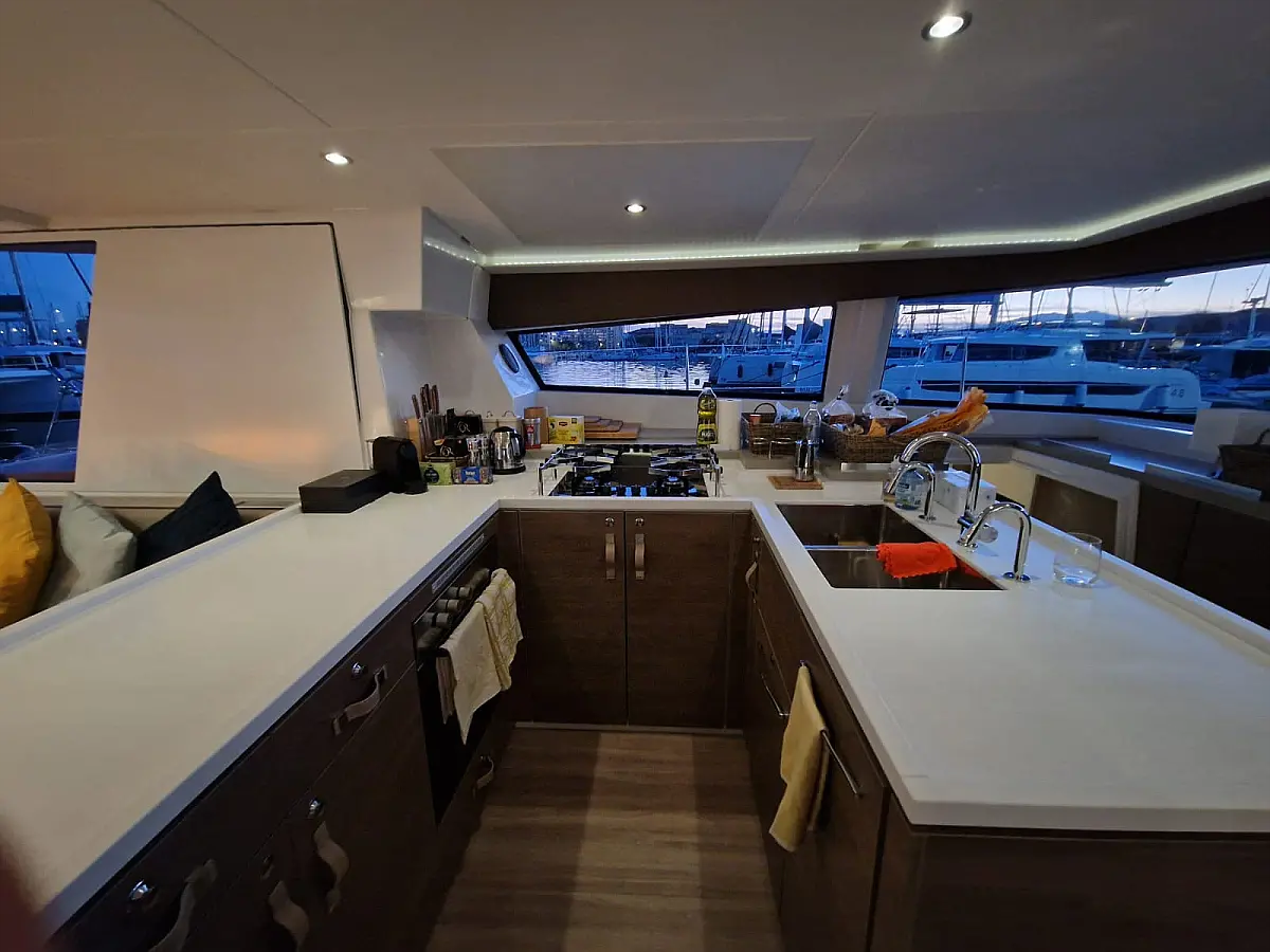 Cockpit cushions, Air condition, Dinghy, Refrigerator, Generator, Barbecue grill in cockpit, Coffee maker, Teak deck, Teak Cockpit, Water maker