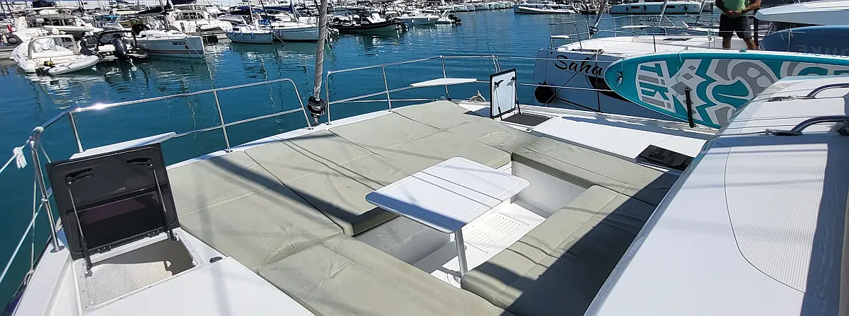 Cockpit cushions, Dinghy, Electric winches, Electric toilet, Coffee maker, Refrigerator, Inverter, Solar Panels, Teak Cockpit, Water maker