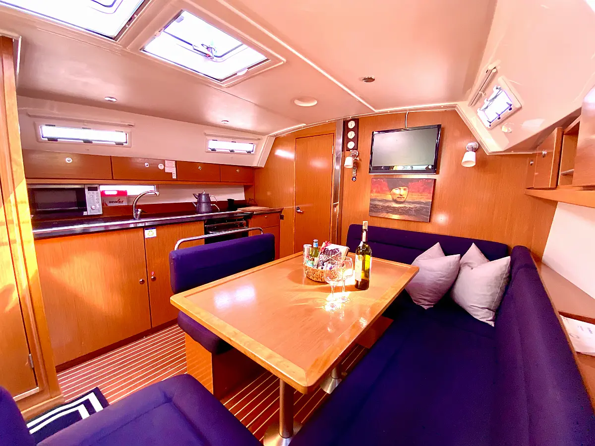 Inverter, Cockpit speakers, Cockpit cushions, Solar Panels, Bimini, Sprayhood, Teak Cockpit, Refrigerator, Dinghy, Heating