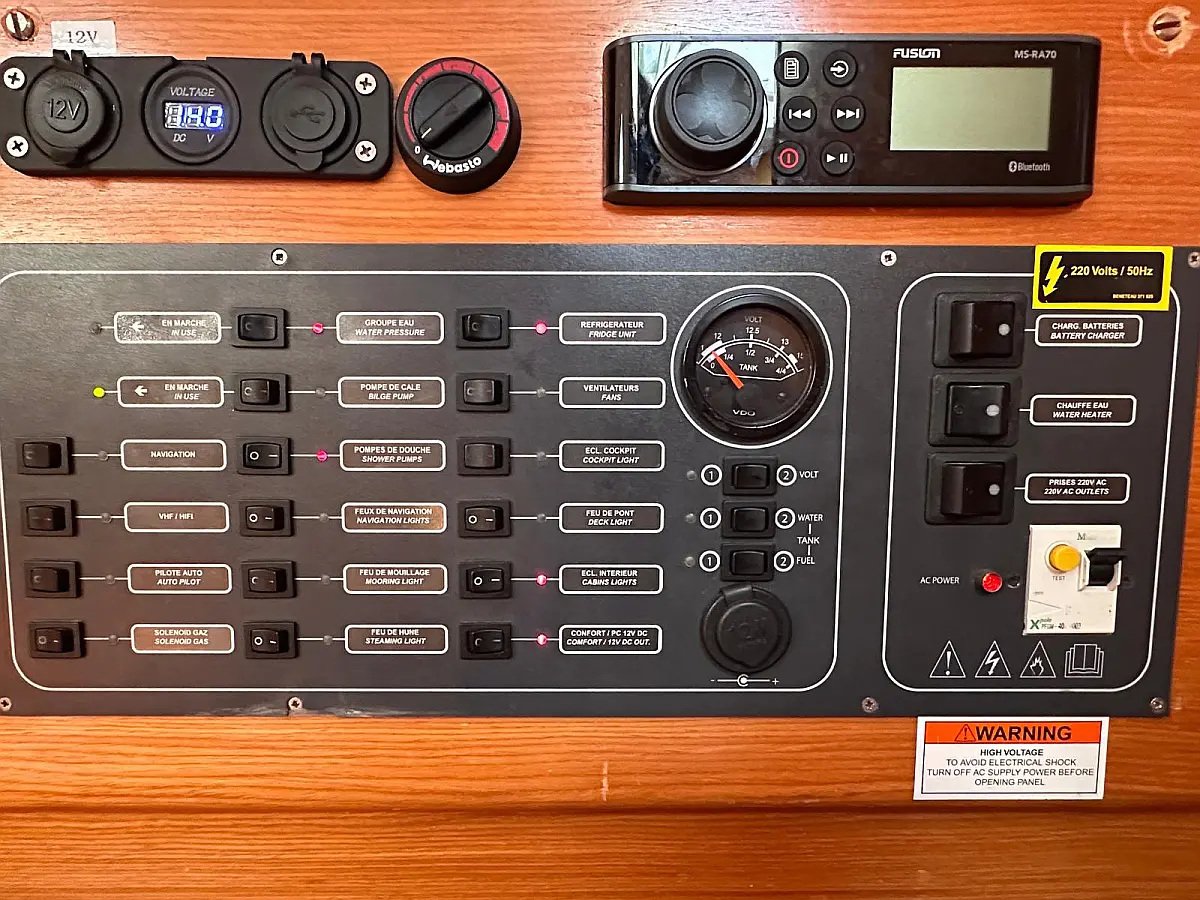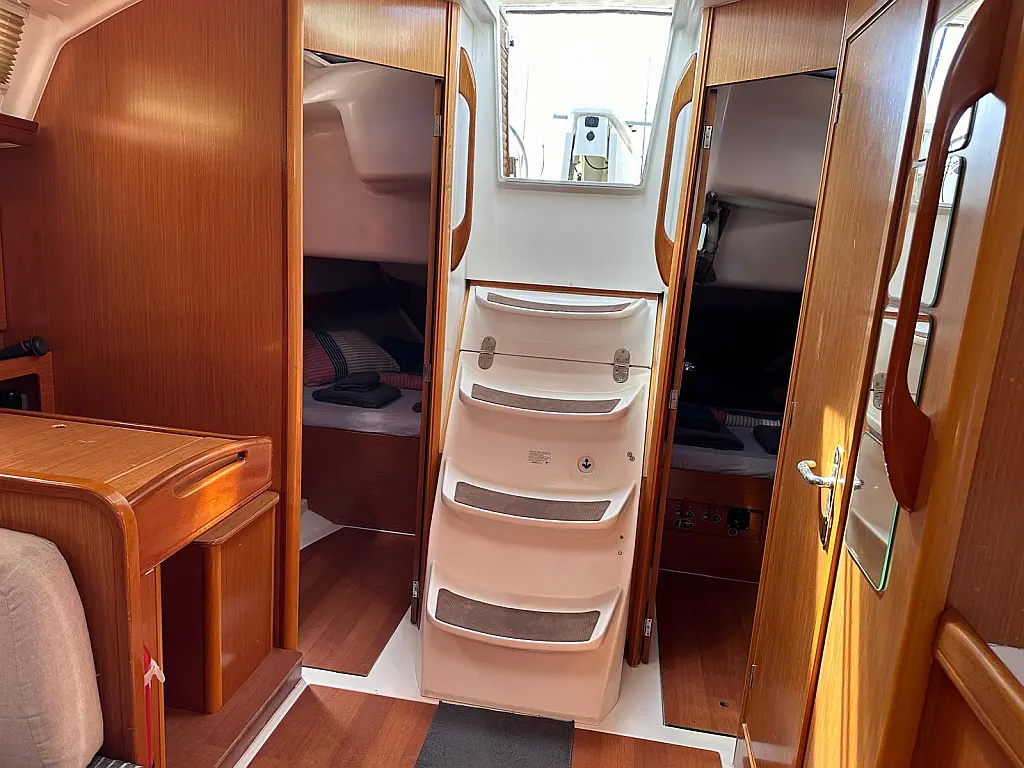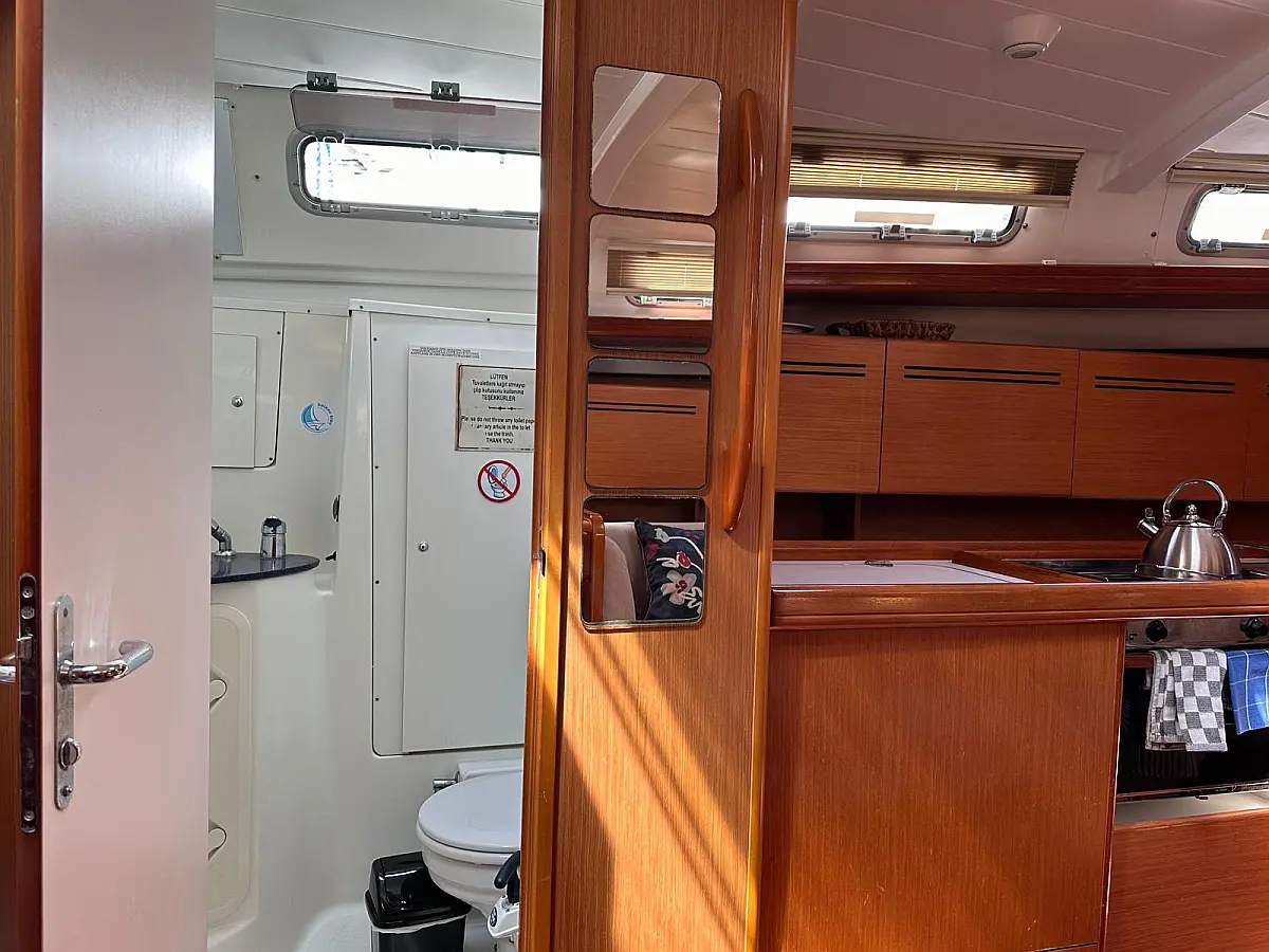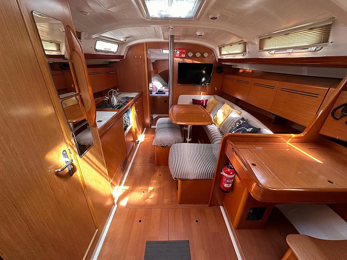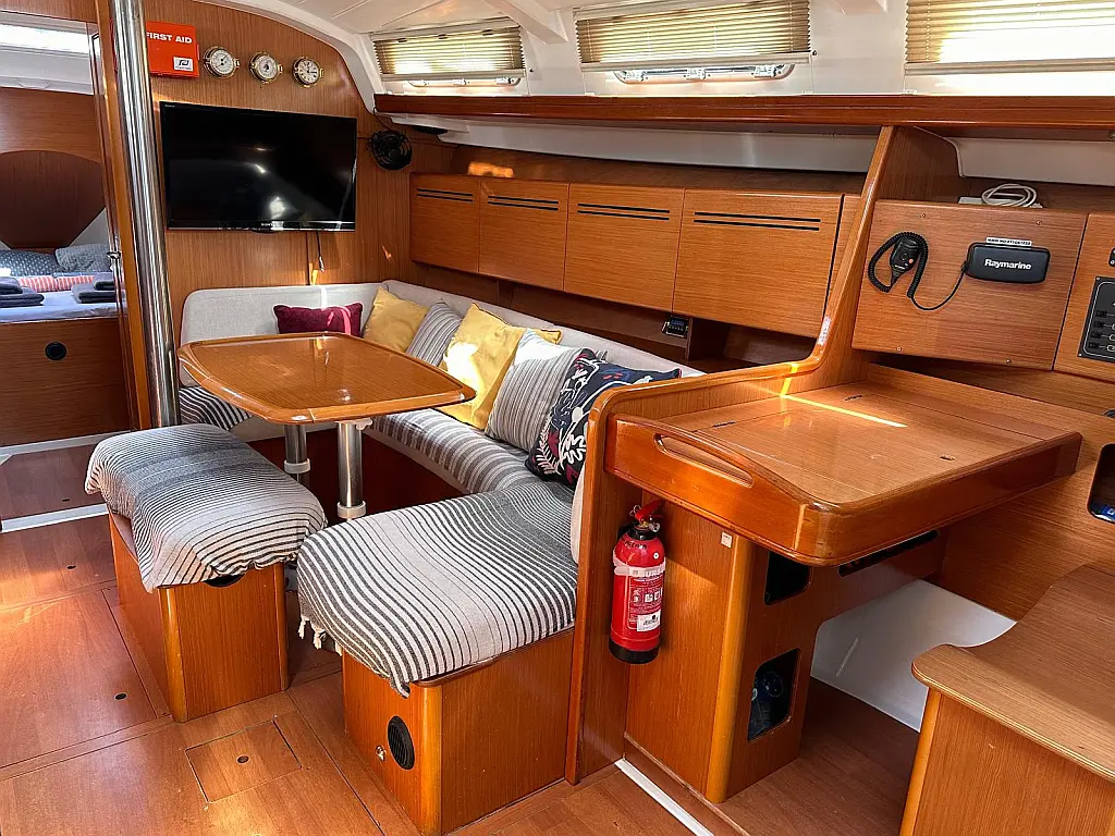 Bimini, Cockpit cushions, Dinghy, Sprayhood, Swimming platform, Outboard engine, Holding tank, Inverter, Solar Panels, Heating, Cockpit speakers, Refrigerator