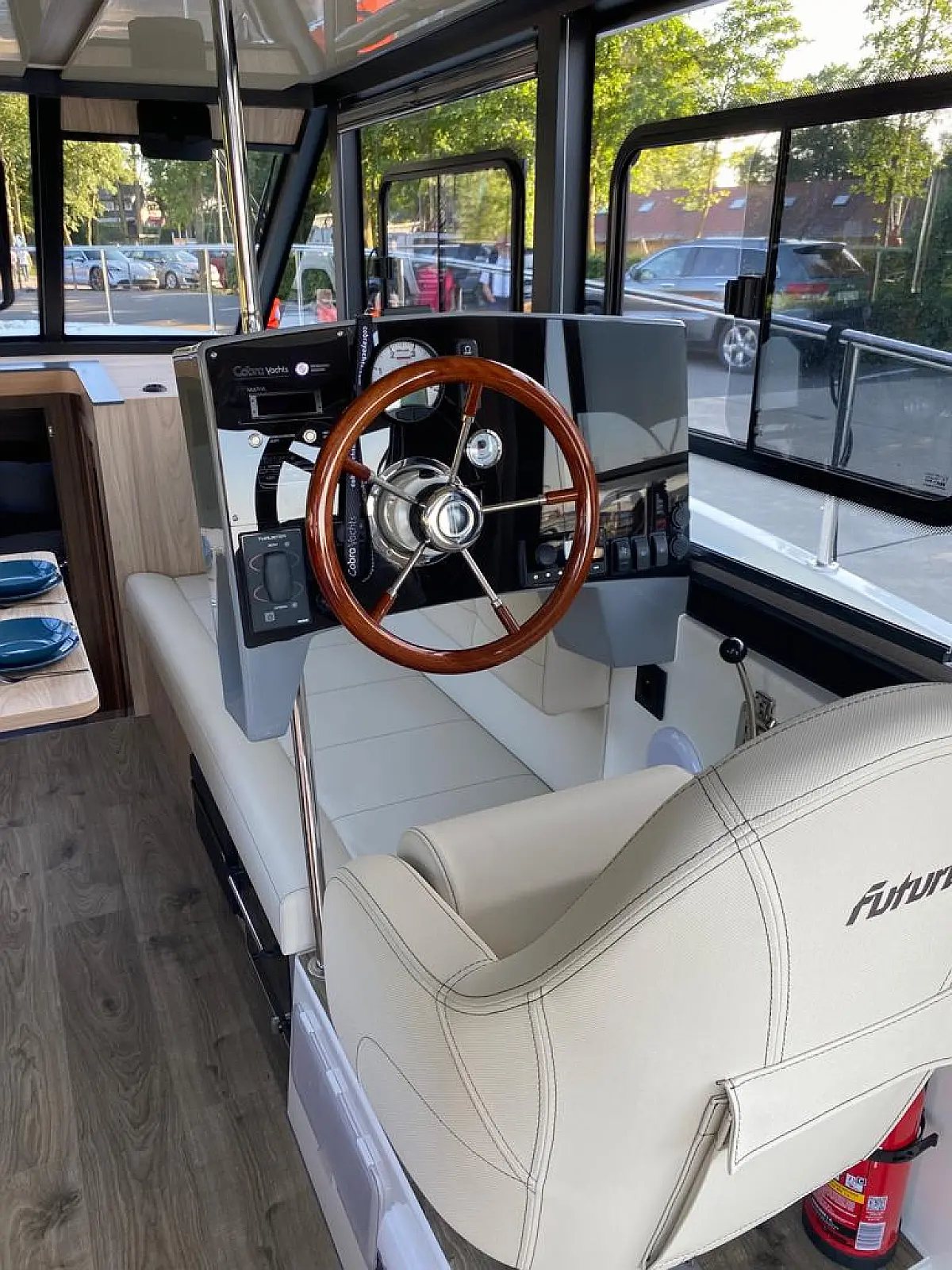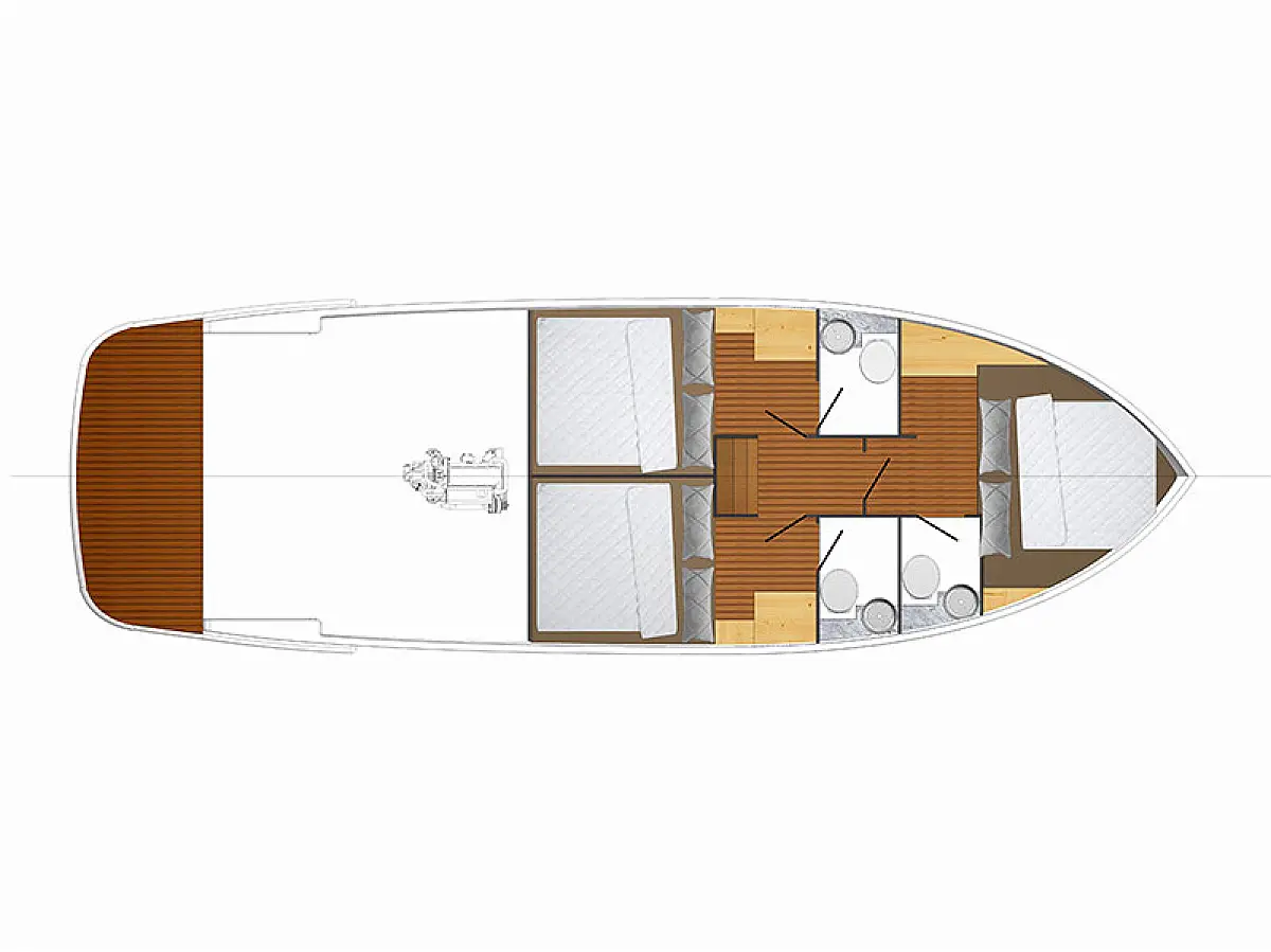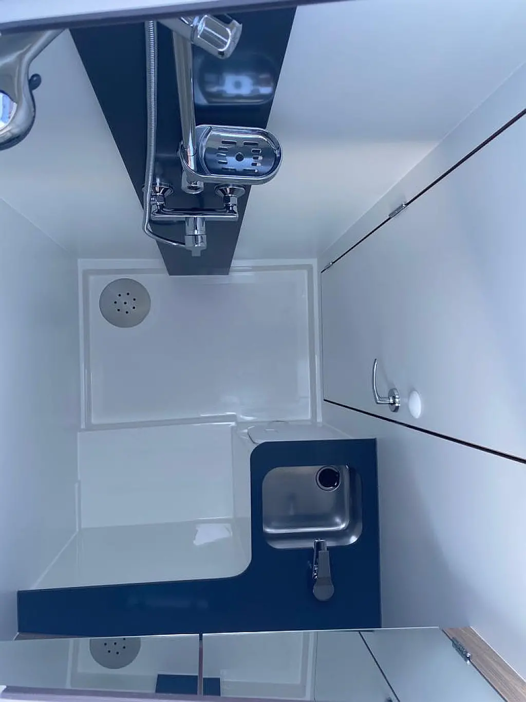 Refrigerator, Coffee maker, Cockpit speakers, Swimming platform, Bimini, Electric winches, Electric toilet