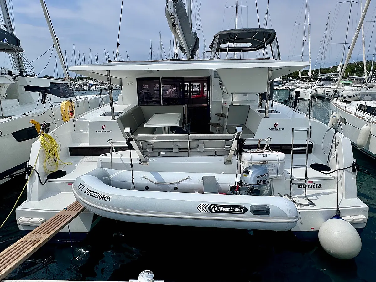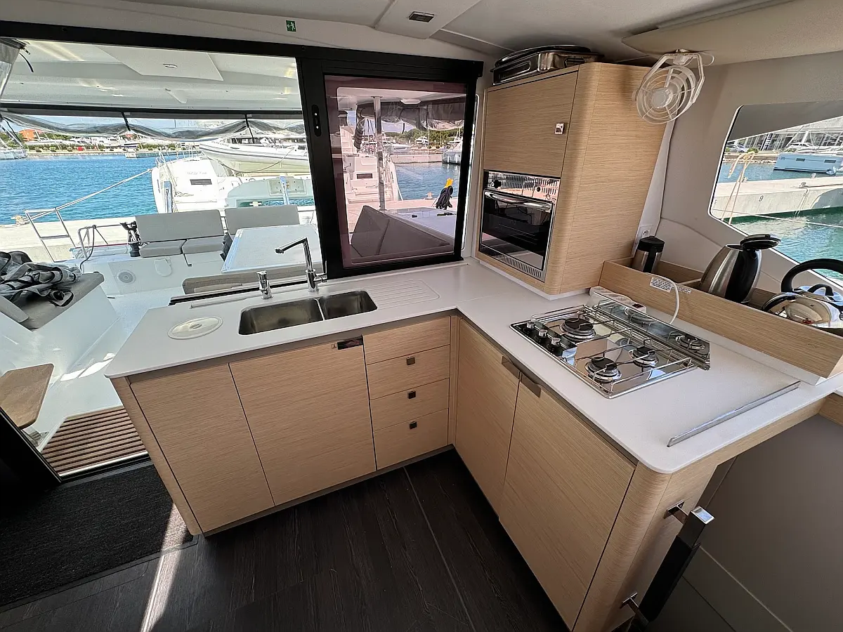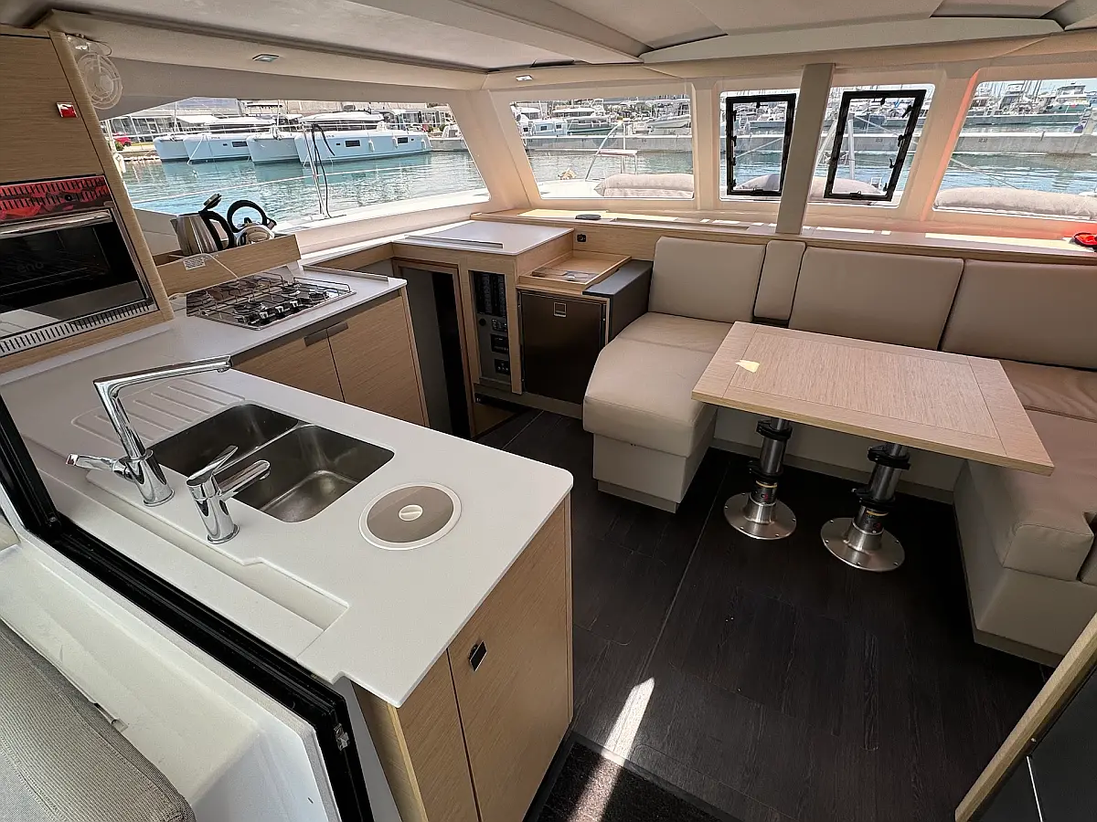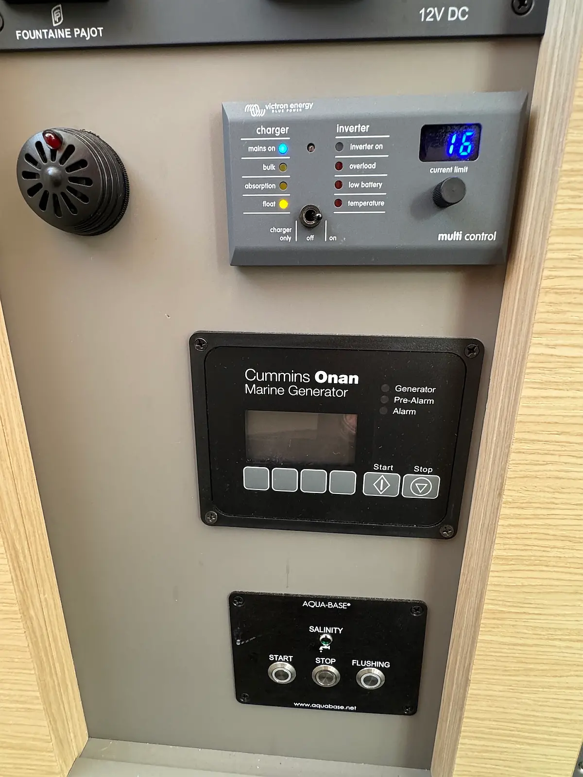Coffee maker, Ice maker, Refrigerator, Dinghy, Wi-Fi & Internet, Water maker, Generator, Inverter, Solar Panels, Electric toilet, Air condition, Bimini, Cockpit cushions, Electric winches