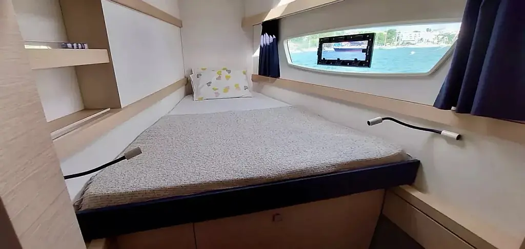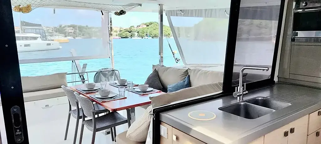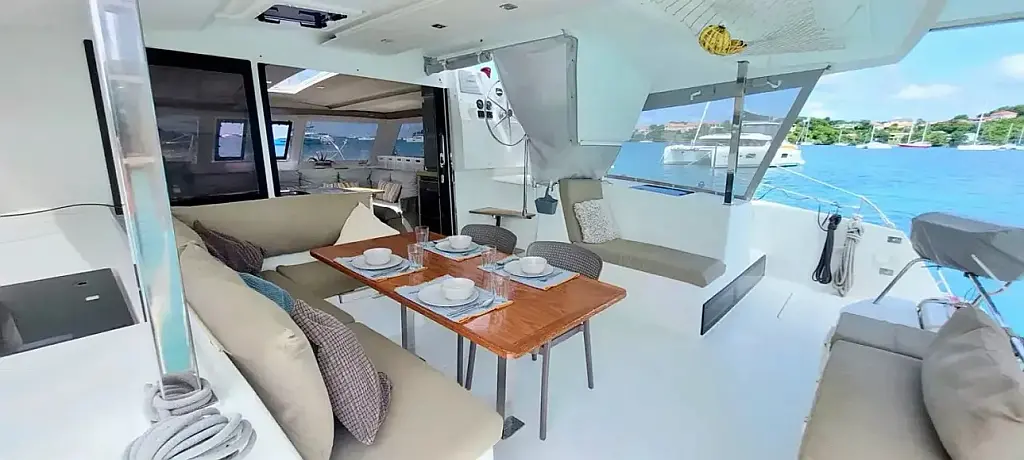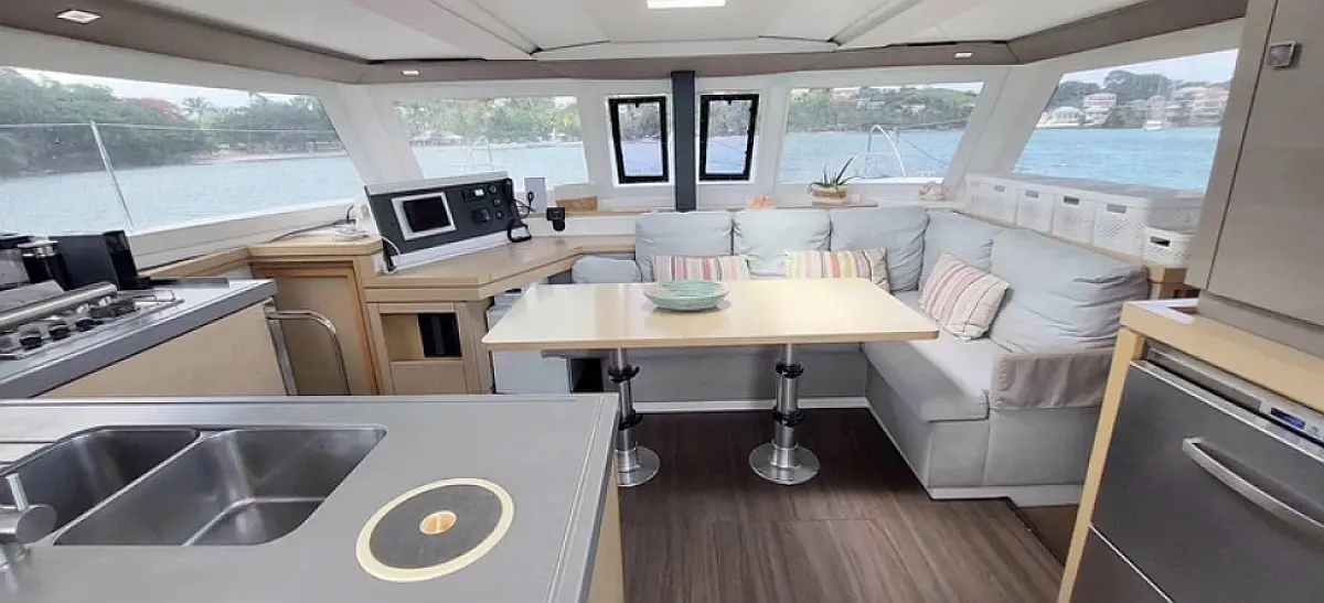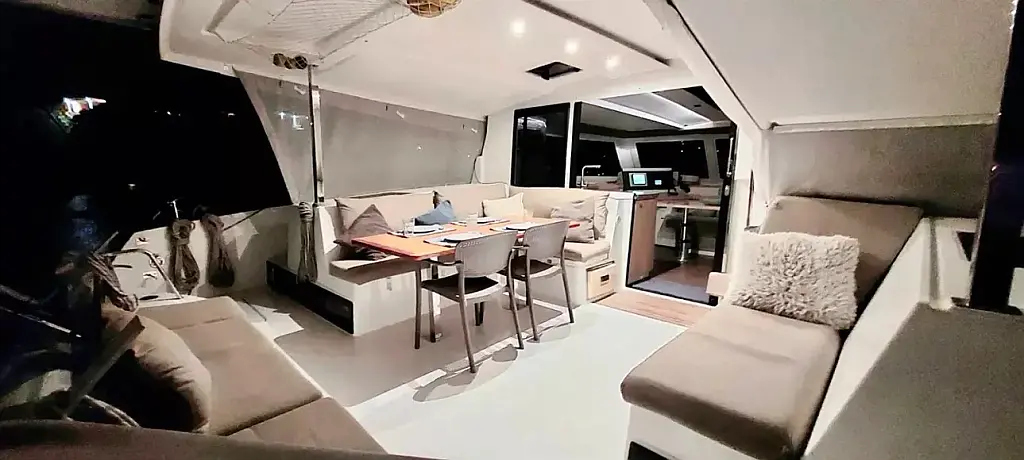 Refrigerator, Barbecue grill in cockpit, Solar Panels, Inverter, Bimini, Sprayhood, Cockpit cushions, Water maker, Electric toilet, Heating, Electric winches, Dinghy
