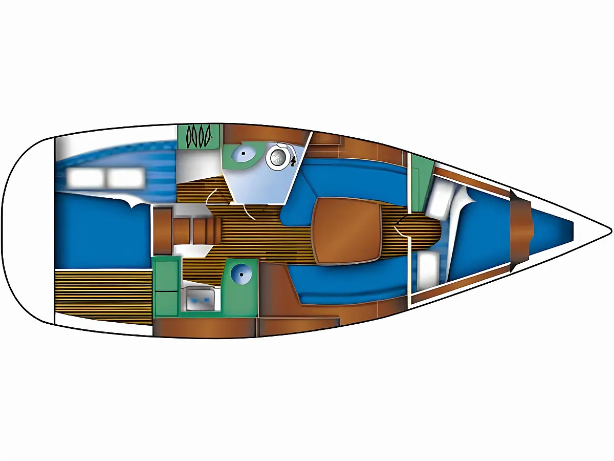 Dinghy, Cockpit cushions, Refrigerator, Holding tank, Solar Panels