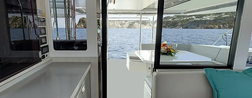 Refrigerator, Bimini, Air condition, Cockpit speakers, Cockpit cushions, Generator, Solar Panels, Electric toilet, Water maker