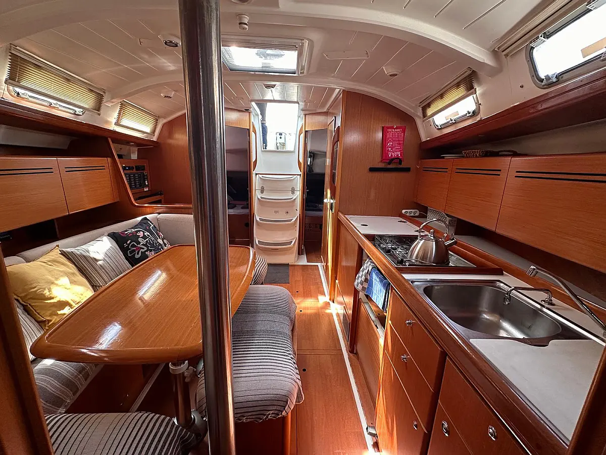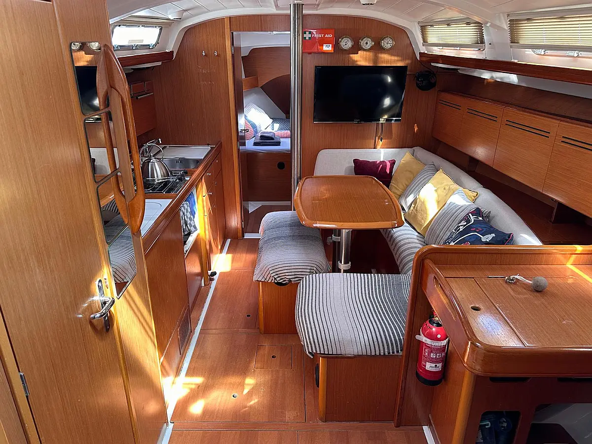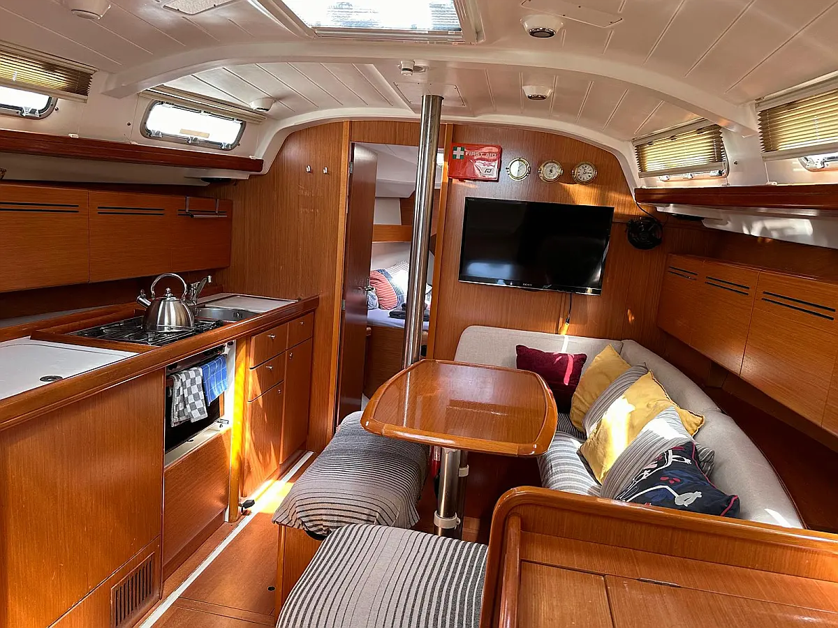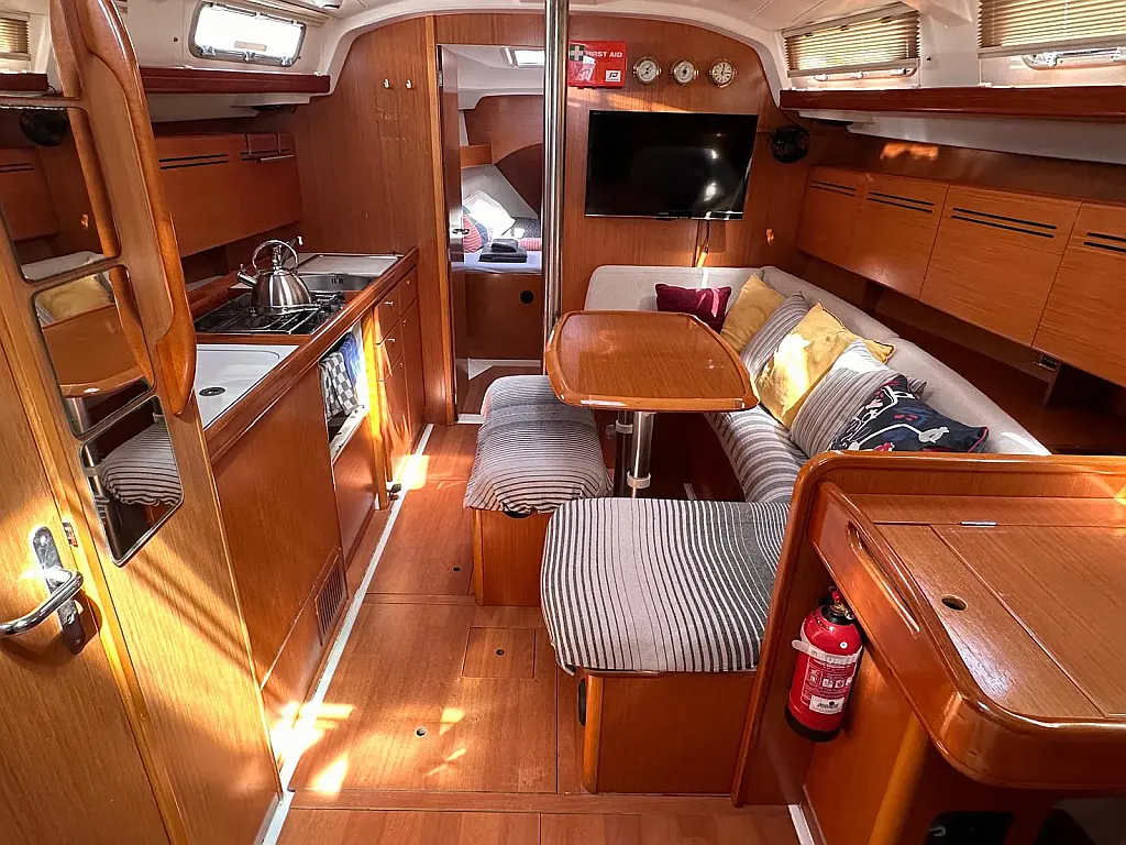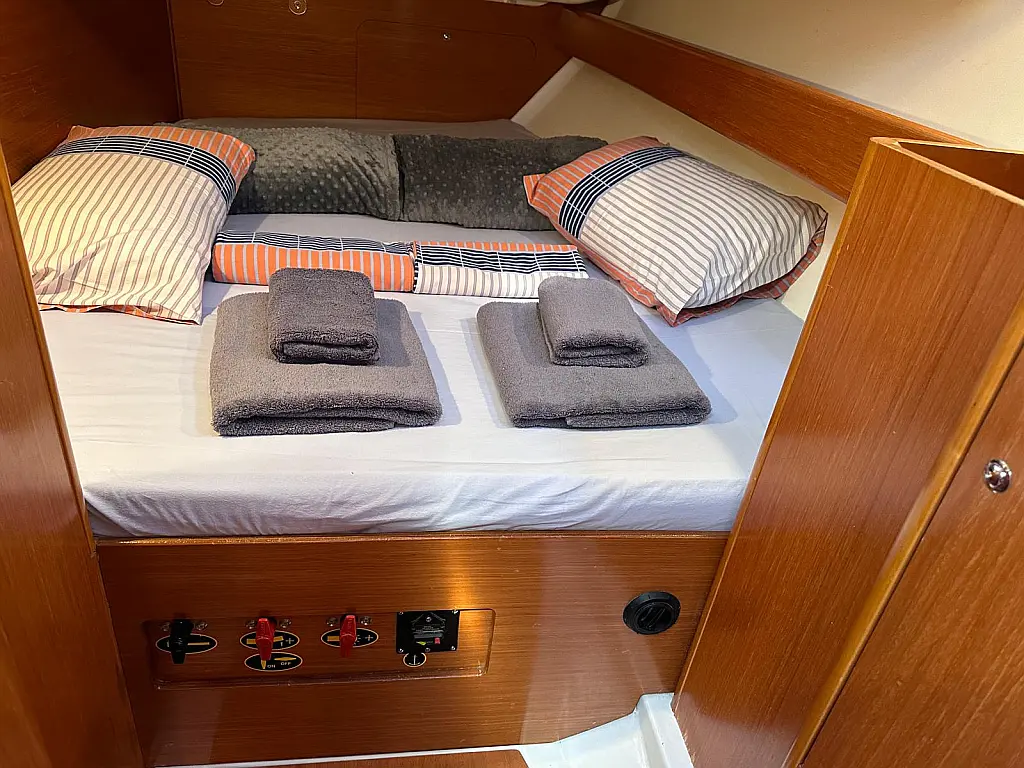 Bimini, Cockpit cushions, Dinghy, Sprayhood, Swimming platform, Outboard engine, Holding tank, Inverter, Solar Panels, Heating, Cockpit speakers, Refrigerator
