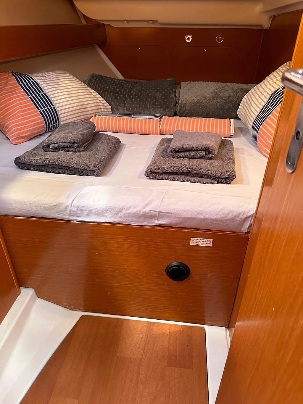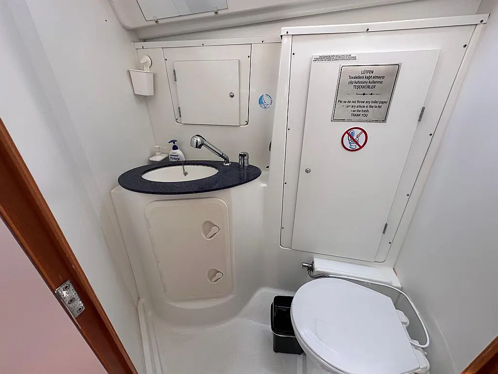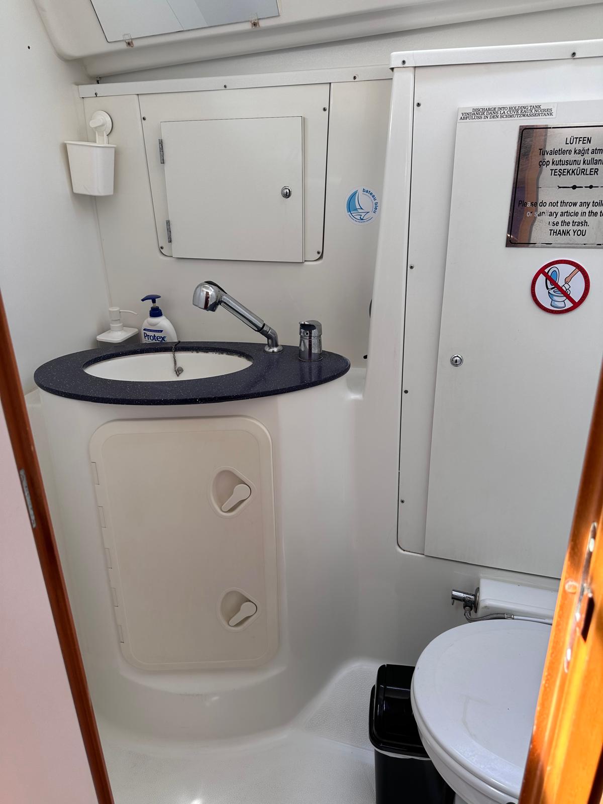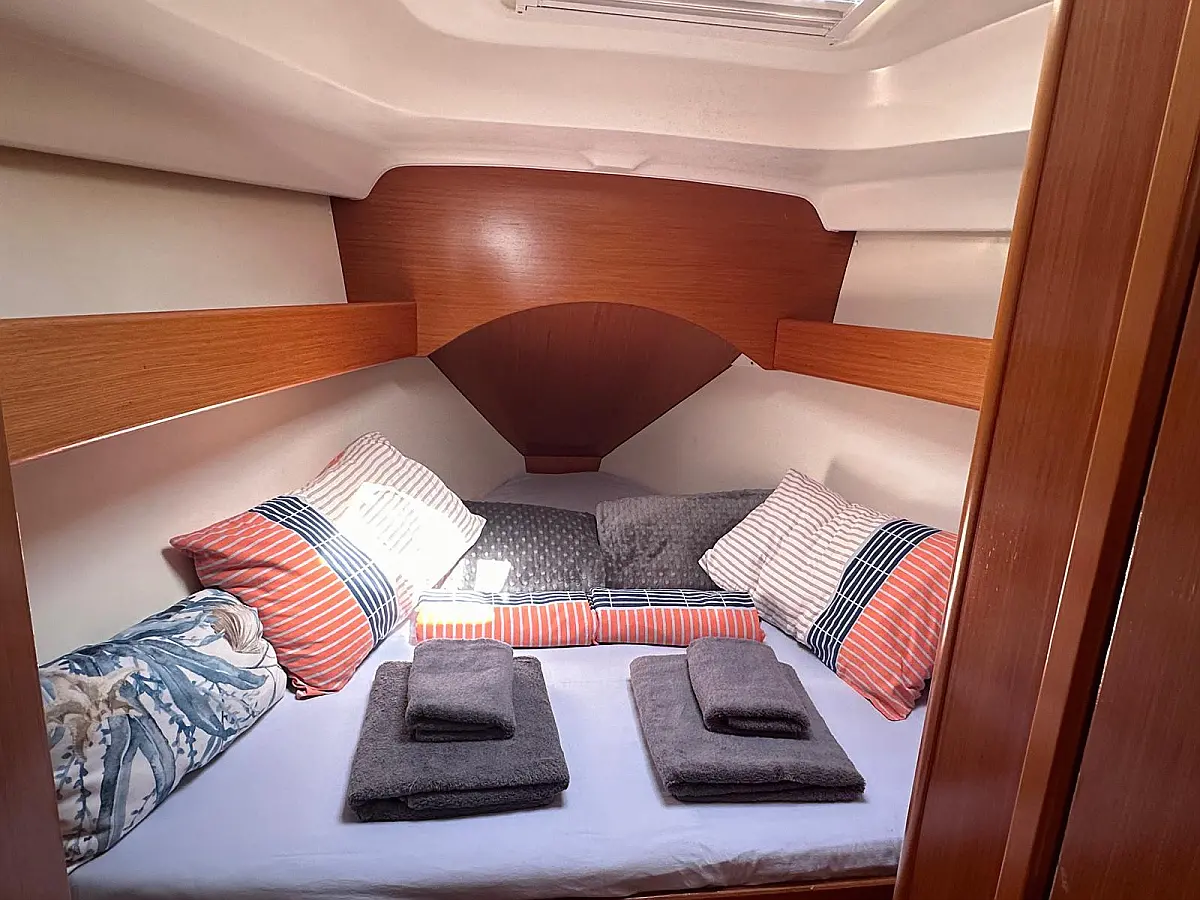 Bimini, Cockpit cushions, Dinghy, Sprayhood, Swimming platform, Outboard engine, Holding tank, Inverter, Solar Panels, Heating, Cockpit speakers, Refrigerator