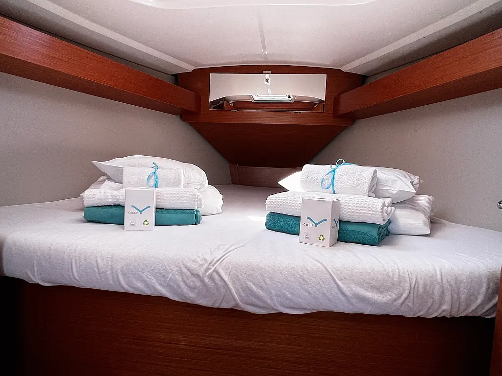 Cockpit cushions, Barbecue grill in cockpit, Teak Cockpit, Electric toilet, Refrigerator, Hydraulic gangway, Inverter, Swimming platform, Solar Panels
