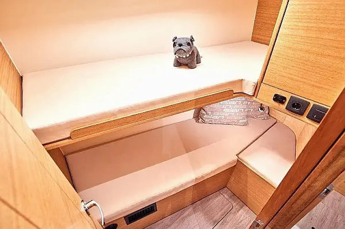 Swimming platform, Bimini, Cockpit cushions, Cockpit speakers, Refrigerator, Electric toilet, Heating, Holding tank, Inverter, Sprayhood, Teak Cockpit, Wi-Fi & Internet