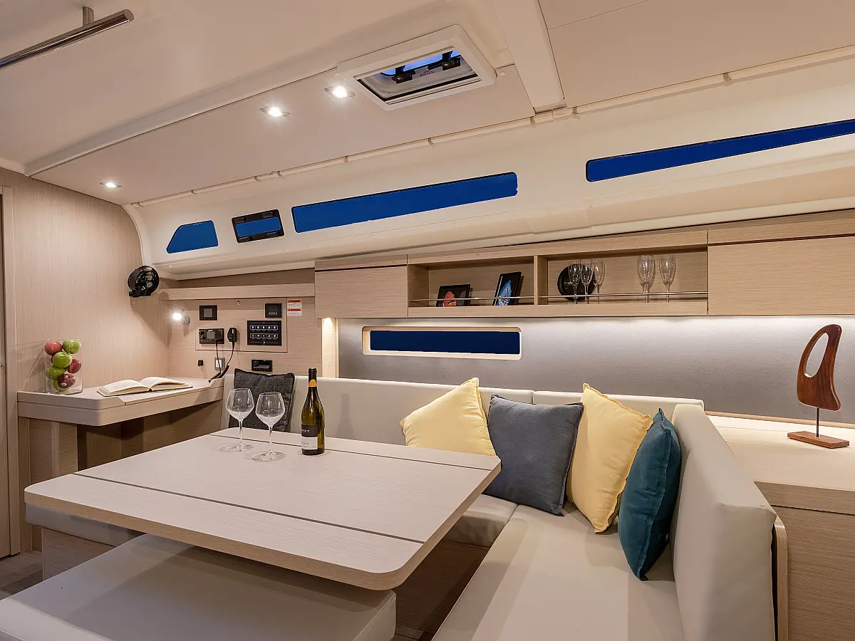 Refrigerator, Coffee maker, Bimini, Cockpit speakers, Cockpit cushions, Dinghy